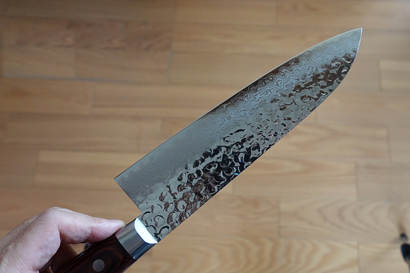 この包丁はV金10号のダマスカス包丁です。V金10号ダマスカス包丁の切れ味、お薦めの理由はこちらページをご覧ください。