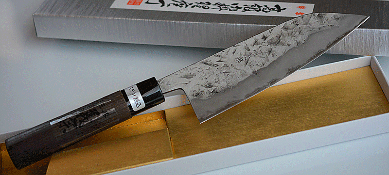 16,800円(税込)切れ味最強!日立金属最高の品質と硬さを誇る青紙スーパー鋼を使用。美しい鎚目仕上げのとても良く切れる三徳包丁です。